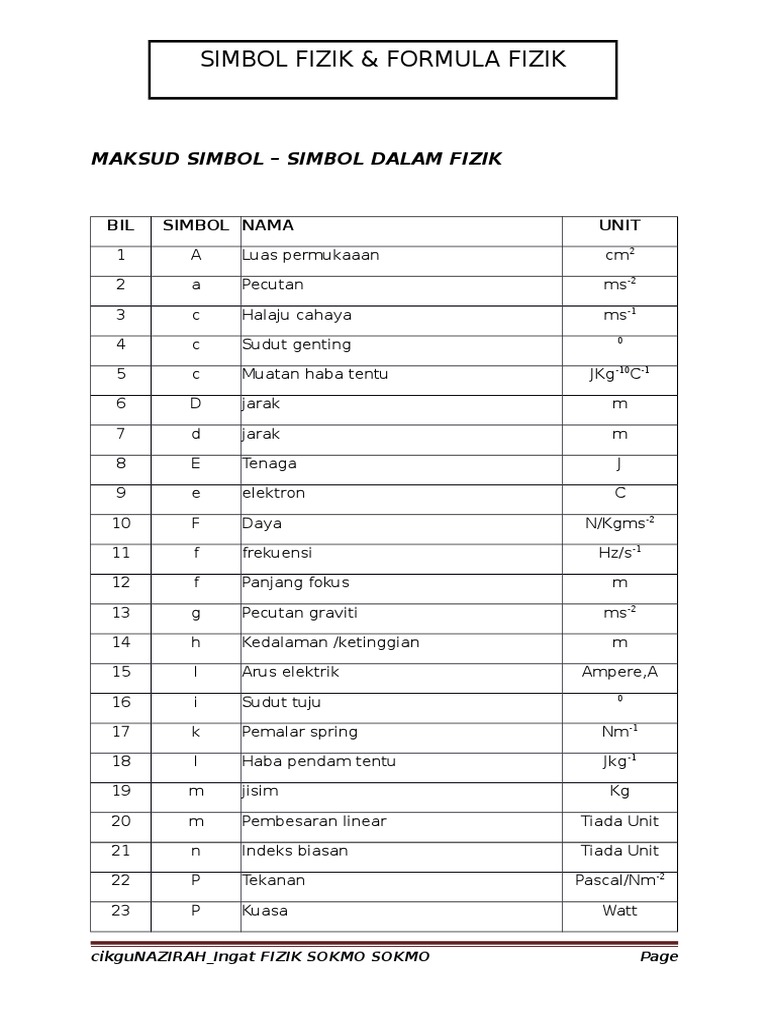 Senarai Rumus Fizik Membalik Buku Halaman 1 7 Fliphtml5